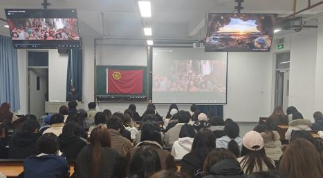 活動伊始,團支書清點到場人數,強調觀影紀律,并詳細介紹影片《我和我的祖國》的創作背景與時代價值。影片以七個普通人的視角,串聯起新中國成立以來的重大歷史瞬間,生動展現了個人命運與國家發展的緊密聯系,讓團員們深刻理解紅色文化與非遺文化一脈相承的精神內核——二者均為民族記憶與文化根脈的重要載體。