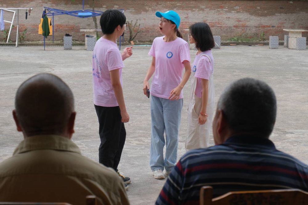 慰問活動在隊員們精心準備的文藝表演中拉開序幕。隊員們給老人們表演了一場有關共產黨人反抗國民黨反動派的壓迫,為中國的復興作出犧牲的歷史情景劇,為老人們重現了革命年代的歲月崢嶸。活動中,老人們與隊員積極互動,他們支持革命黨人的壯舉,為他們的犧牲感到痛惜。“復興中華”的呼聲響徹在敬老院的天空。