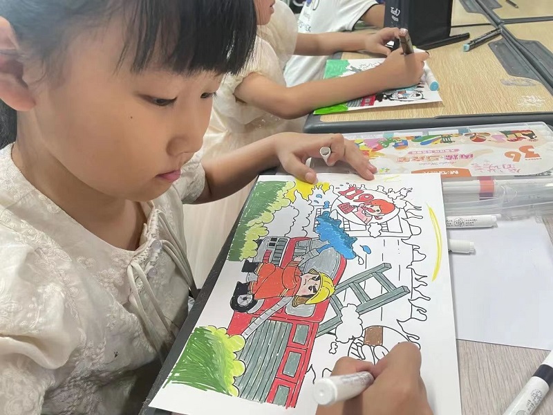 實踐隊隊員結合小學生群體的特點,創新課堂授課方式,將手工課與消防知識相結合,讓孩子們在玩中學,學中玩。上午的課程由鄭慧慧同學主講。鄭慧慧從認識消防器材及消防標識,預防火災、使用滅火器等基礎知識來引入本次課程主題,通過制作消防手抄報的方式幫助小朋友們加深對消防知識的記憶。下午的課程由毛浩宇和朱卓宇兩位同學共同完成。課程圍繞火災特點、逃生知識,滅火小妙招等內容展開,通過制作黏土創意畫,讓小朋友在提升動手能力的同時,進一步加強消防安全意識。