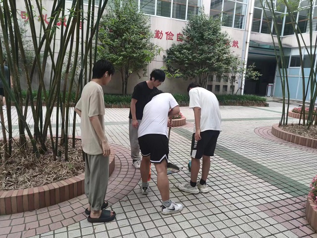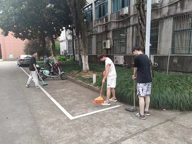 圖為在學校內清理宿舍街道垃圾圖片。 今日大學生網通訊員 單丹檸 供圖