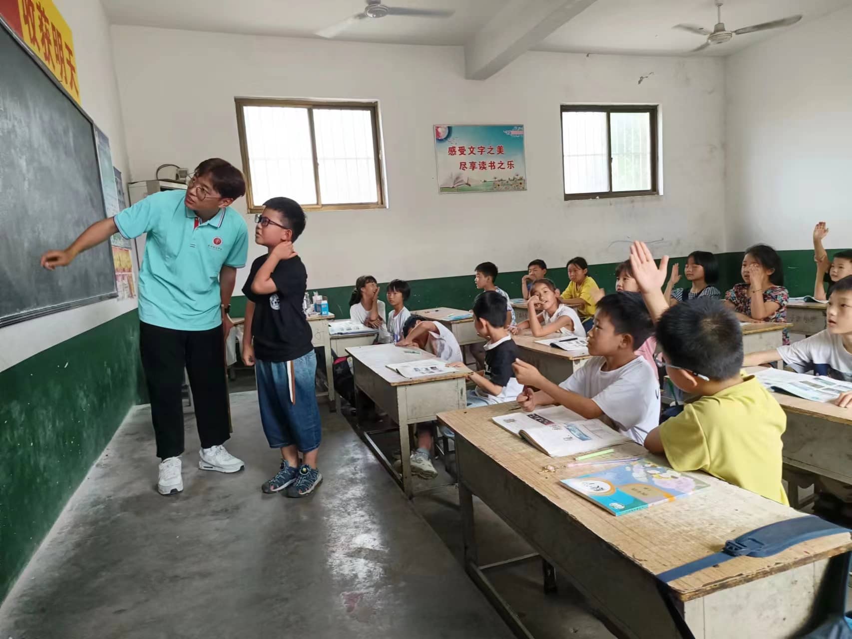 圖為支教成員課堂為孩子講解問題 (姚婷婷 供)