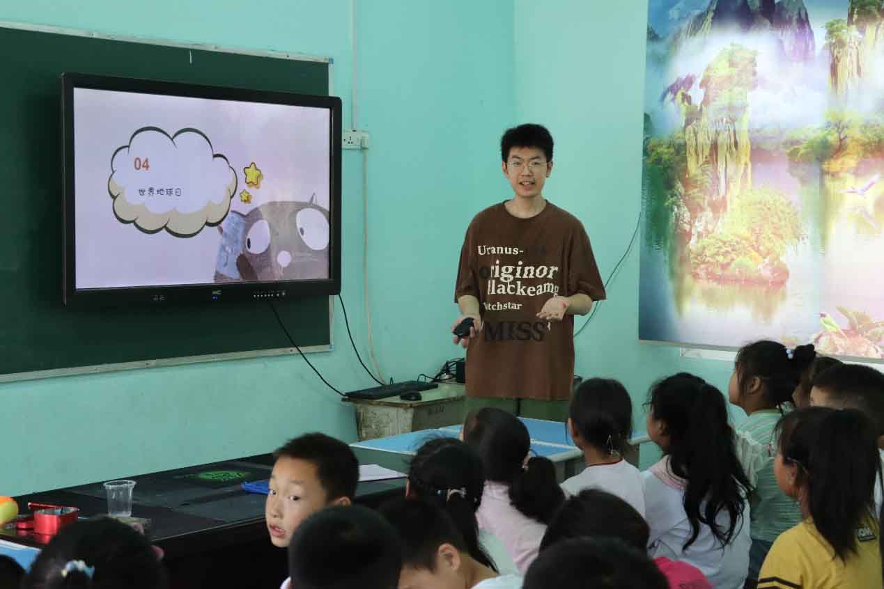 圖為螢火蟲志愿隊員在為小朋友們介紹環(huán)境保護的知識,通過這堂課,小朋友獲益匪淺,懂得了如何使自己的鄉(xiāng)村更加美麗。(圖 黃思進)