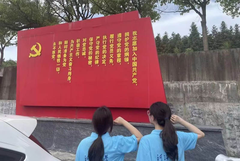圖為調研團成員重溫入黨誓詞的照片 林金蓉 供圖