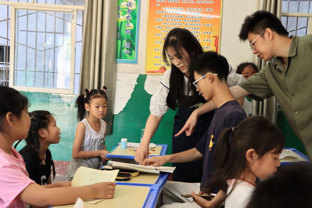 圖為紫薇花·螢火蟲暑期志愿服務隊隊員與學生積極互動。通訊員吳欣蔚供圖