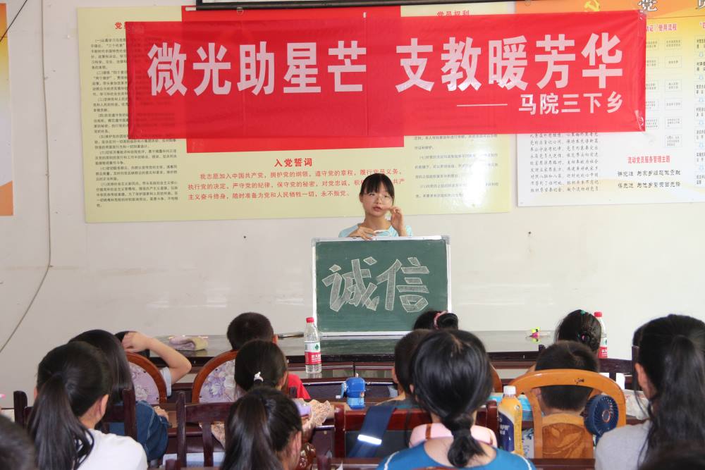 為大力弘揚社會主義核心價值觀,推進社會誠信建設。7月9日上午,川北醫學院馬克思主義學院暨青年馬克思主義學會赴廣安區“載忽微星夢,舵醫馳白馬”鄉村振興促進隊前往廣安市白馬鄉明星社區開展‘以誠育人’的主題支教活動。