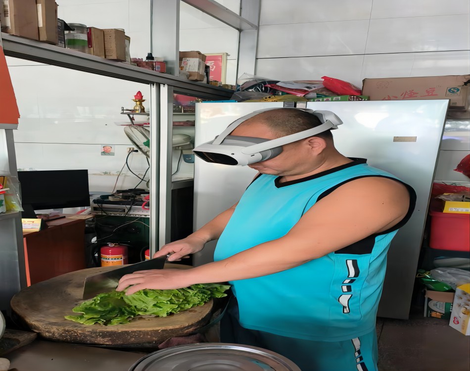 調(diào)研團(tuán)所攜帶的智慧廚房產(chǎn)品采用多設(shè)備互聯(lián)的方式,通過智能識別、算法處理、快捷控制等功能,通過MR形式的做飯教程,為用戶制定個性化的、健康的菜譜,并按步驟指導(dǎo)用戶進(jìn)行烹飪,此外還能有相應(yīng)的安全隱患提醒。為了進(jìn)一步滿足用戶需求、完善產(chǎn)品功能,調(diào)研團(tuán)對兩家餐飲店的廚師進(jìn)行產(chǎn)品使用體驗以及調(diào)研訪談。