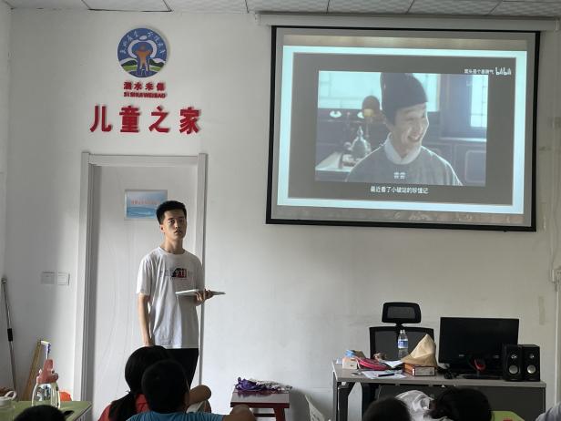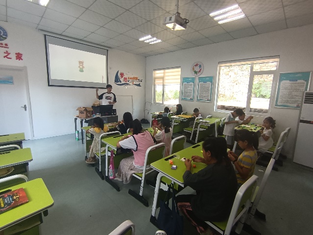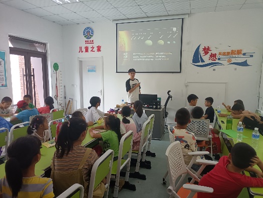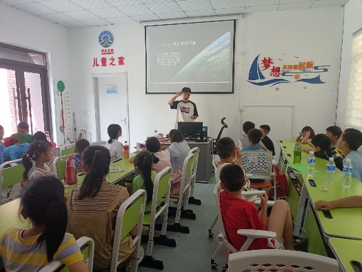 宇宙浩瀚無垠,令人向往,在和同學(xué)們交流的過程中,支教隊員們發(fā)現(xiàn)許多同學(xué)對地球在宇宙的位置,各個星系有濃厚的興趣。為此,在8月2日第二節(jié)課,曾一豪老師特別設(shè)計了“宇宙中的地球”這一特色課程,從地球到太陽系再到銀河系,再到宏大的宇宙,一張張夢幻深邃的照片引來了同學(xué)們的陣陣驚嘆,最后,曾一豪落腳地球在宇宙中的獨特性以及地球生命的來之不易,呼喚同學(xué)們保護(hù)好自己的唯一家園。