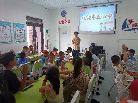 少年先鋒隊是中國少年兒童的群團(tuán)組織,是黨的預(yù)備隊,幫助同學(xué)們充分認(rèn)識少先隊的光榮使命以及少先隊員的責(zé)任義務(wù)就變得格外重要。因此,在8月2日第三節(jié)課,支教隊隊長李翼針對性設(shè)計小學(xué)思政課程“紅領(lǐng)巾在心中”,通過講解列寧夫人的故事、勞動童子團(tuán)、革命兒童團(tuán)等紅色革命故事,幫助同學(xué)理解少年先鋒隊的由來,性質(zhì)。他還結(jié)合同學(xué)們的日常行為習(xí)慣,幫助同學(xué)們理解少年先鋒隊員的責(zé)任和義務(wù)。下課后,許多同學(xué)自覺地帶走了身邊的垃圾,整理好了桌子椅子,課程取得了良好的效果。