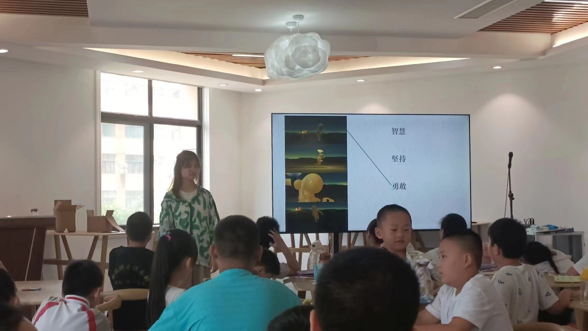 第二節(jié)課,支教隊(duì)隊(duì)員田家園為孩子們帶來(lái)了《電影賞析》第二節(jié)。首先,她帶領(lǐng)孩子們一起回顧了《失物招領(lǐng)》《飄》《相似》三部短片,隨后,她們一起觀看《兔耳袋貍》《舍與得》《蠟燭人》三個(gè)短片,在互相幫助,愛(ài)、勇氣與自我犧牲,團(tuán)結(jié)奉獻(xiàn)中尋找生活的意義與自身存在的價(jià)值,向孩子們傳遞正能量,鼓勵(lì)他們積極向上、勇于表達(dá)自我。