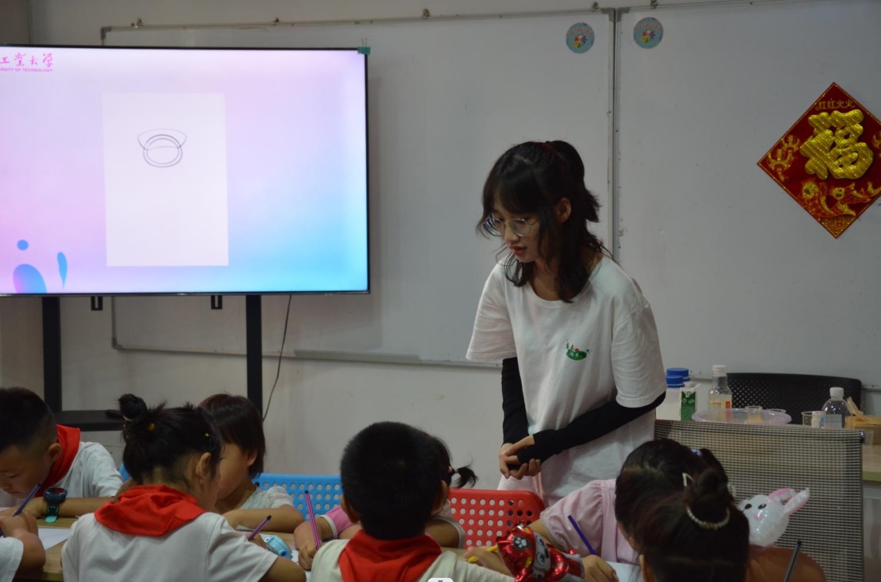 實踐團成員王璐陽正在教孩子們畫畫(成員李陽 攝)