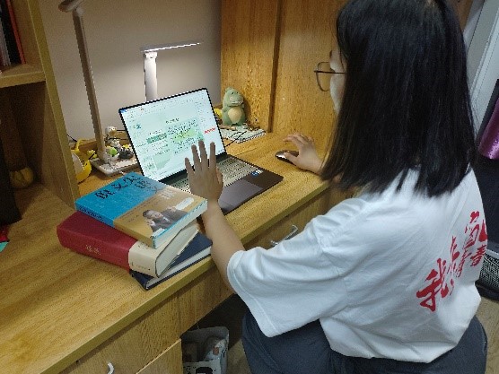 7月5日,團隊成員借助線上設備同貴州省興仁市第七中學的同學們展開交流,為當地的孩子們帶來了一堂彰顯中華傳統文化魅力的詩詞鑒賞課。團隊成員柯舒凌以重讀李商隱的詩歌《夜雨寄北》為主題,講述詩人的生活經歷,展現時間的珍貴與生命的悠長?率媪杞Y合自身經歷,細致講解了“君問歸期未有期”、“巴山夜雨漲秋池”等句子,讓貴州的同學們感受到詩人內心的孤獨和無助,同時也引發了對人生的思考和情感的共鳴。