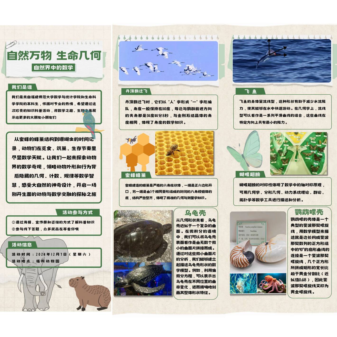 籌備·啟航在活動開展前,支部成員便投入緊鑼密鼓的準備工作,精心挑選自然法則下蘊含的數學韻律,匠心編纂科普手冊和宣傳海報。同時,與動物園負責人充分溝通,規劃好每一個細節。并在多平臺做好預熱宣傳工作,讓科普的力量覆蓋到每一寸角落。