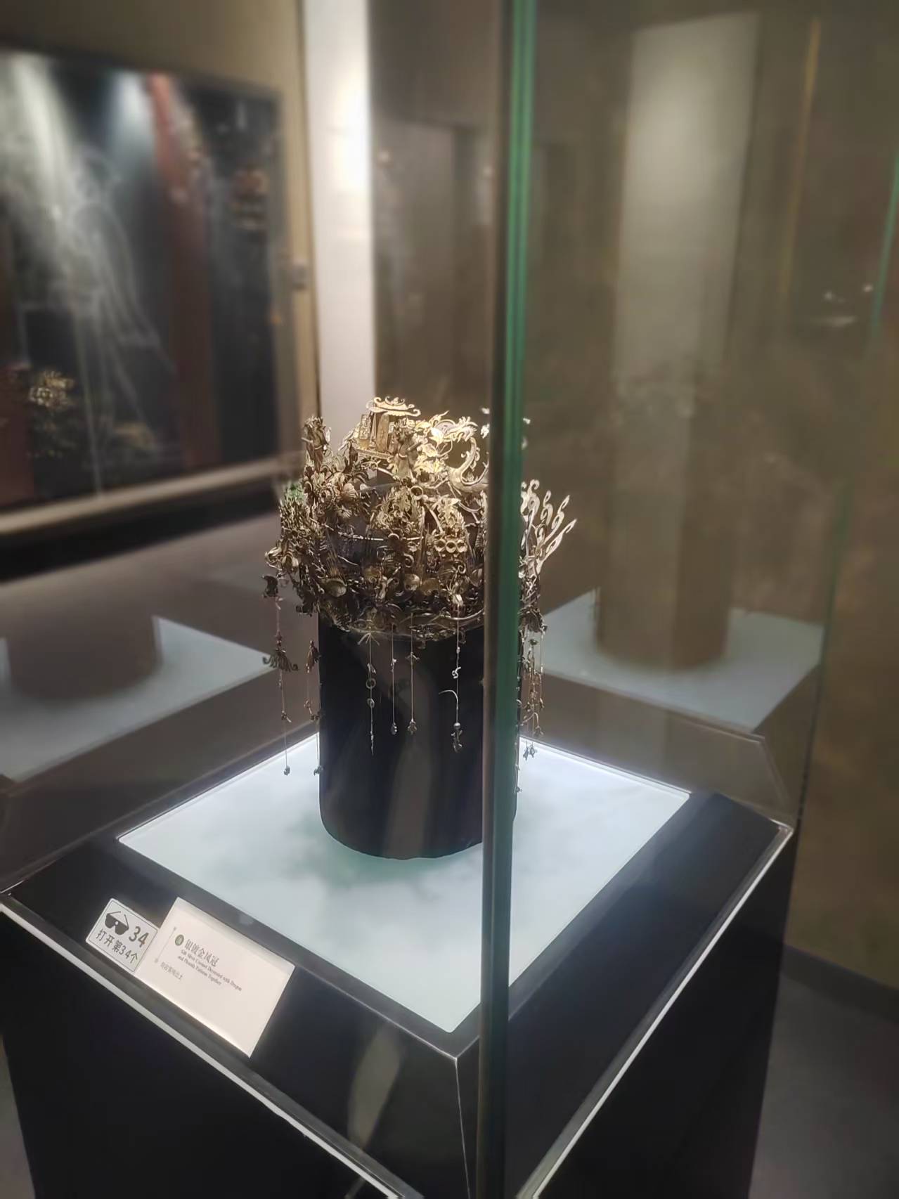 (放于鎮江博物館金銀器展廳的銀鍍金鳳冠 拍攝人 王敏)