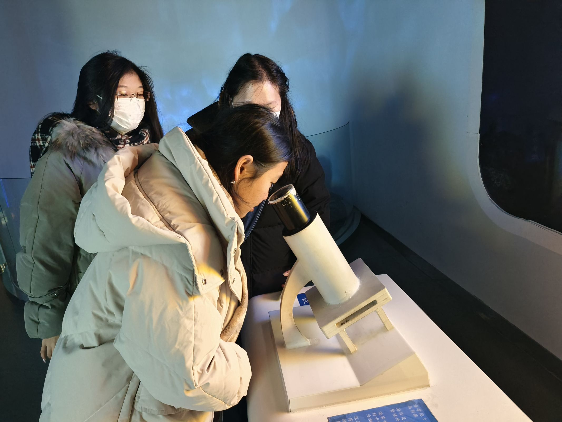 在實踐過程中,實踐隊員細(xì)致觀察顯微鏡下的海帶孢子有性繁殖的動畫影像。通過顯微鏡,實踐隊員可以看到海帶從一個小小的孢子,逐漸分裂成團狀的細(xì)胞團。“其實海帶并不一直是植物的,他是從動物變成植物的,即從微生物變成海藻”,工作人員講解到,“我們中國的海帶育苗技術(shù)非常先進(jìn),因為我們對海帶的生長非常了解,這也使我們變成了全球的海帶第一養(yǎng)殖大國。”認(rèn)真學(xué)習(xí)相關(guān)信息后,實踐隊員對這一動畫影像有了更加深刻的理解。