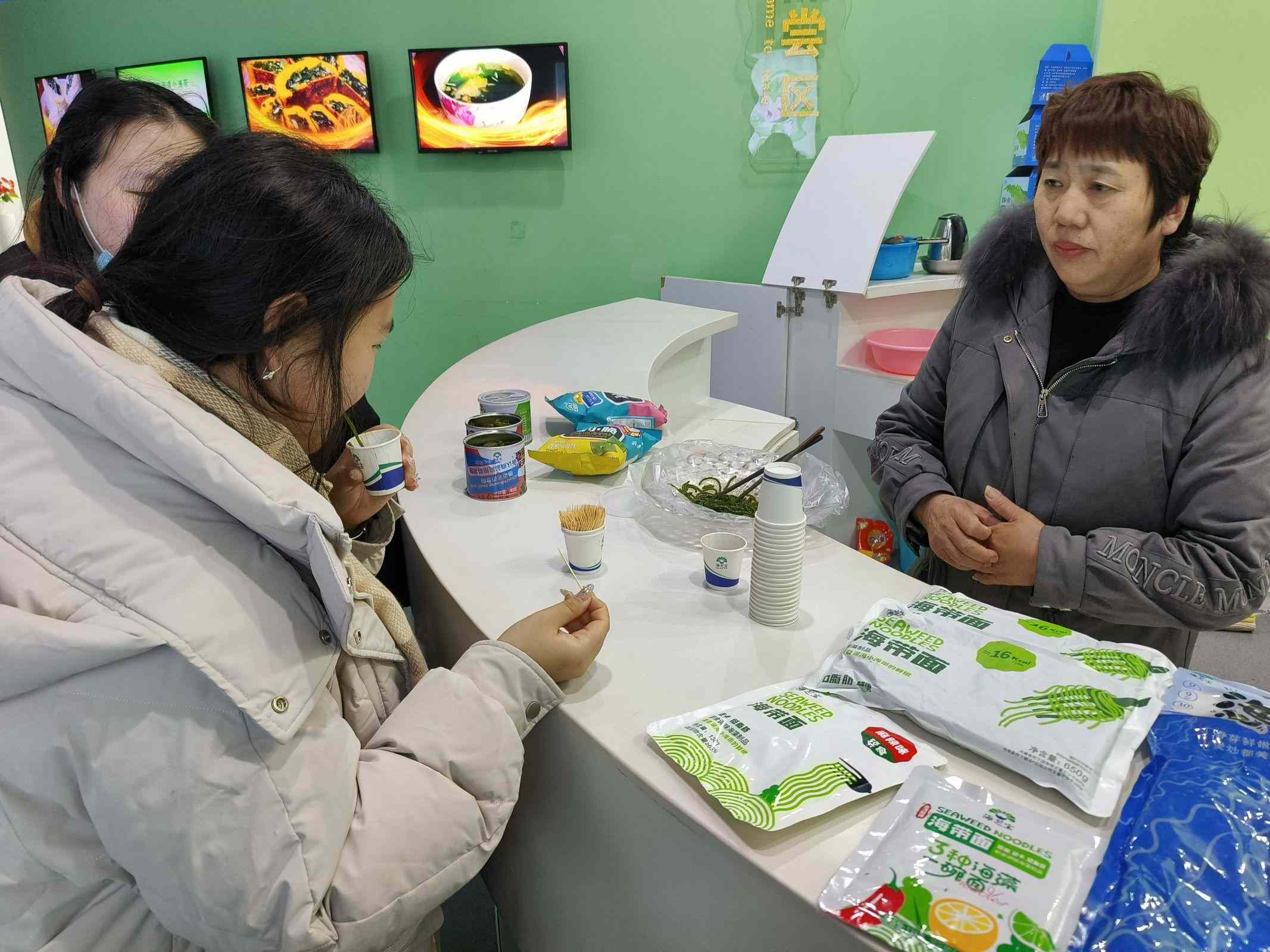 在海帶館內(nèi)售賣的部分商品,其中就包括海帶面。經(jīng)實踐隊員品嘗,該商品口感爽滑、味道鮮美。據(jù)實踐隊員采訪得知,這是一種完全由海帶制作而成的面條,不包含任何面粉,熱量較低,適合年齡范圍較大,吃起來沒有任何負(fù)擔(dān)。最重要的是海帶的品質(zhì)極好,制作而成的海帶面質(zhì)量也好。據(jù)調(diào)查,榮成附近海域水質(zhì)較好、生態(tài)環(huán)境良好,因此在干凈的海水下,才能生長出干凈的、品質(zhì)良好的海產(chǎn)品。