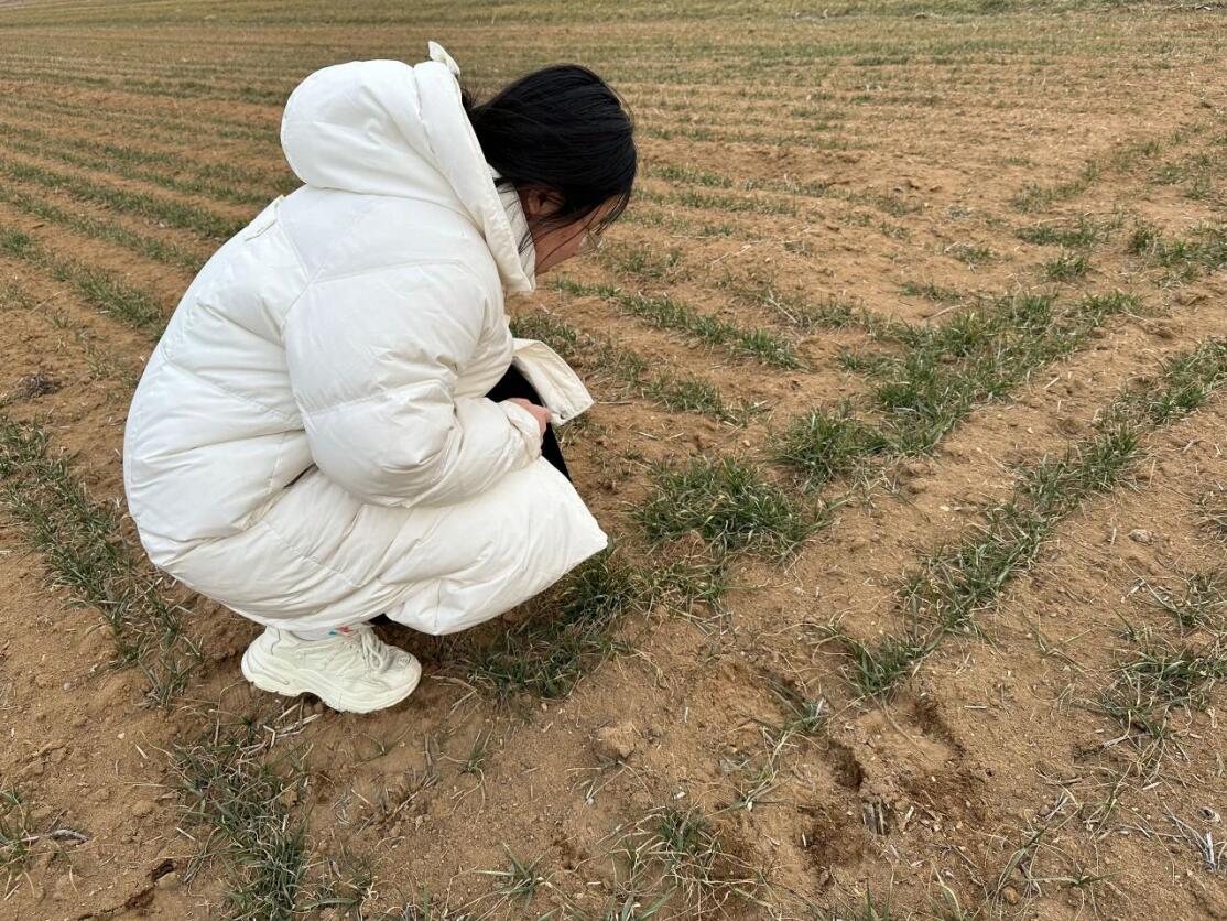 圖為社會實踐隊隊員觀察小麥生長狀況。通訊員 張孜碩 供圖
