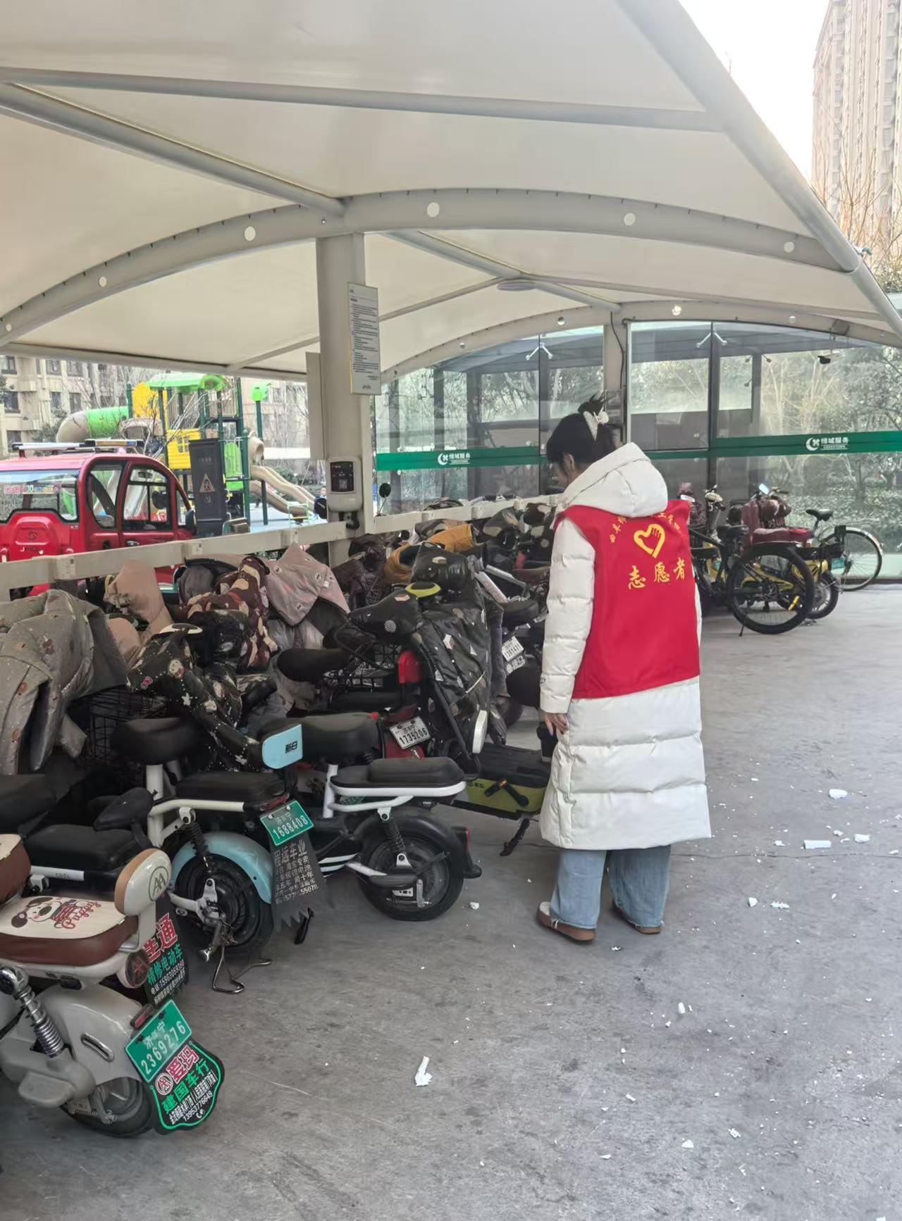 根據調查統計結果,實踐隊成員決定考察社區環境情況。在社區中發現較多垃圾,并且發現車棚中車輛擺放不整齊、隨意亂停車輛的問題。針對這些問題實踐隊成員聯系社區工作人員進行反映,并將問卷調查、走訪居民統計結果告知,工作人員表示今后會更加注意。最后,實踐隊成員主動打掃社區衛生、整理車棚中的車輛。