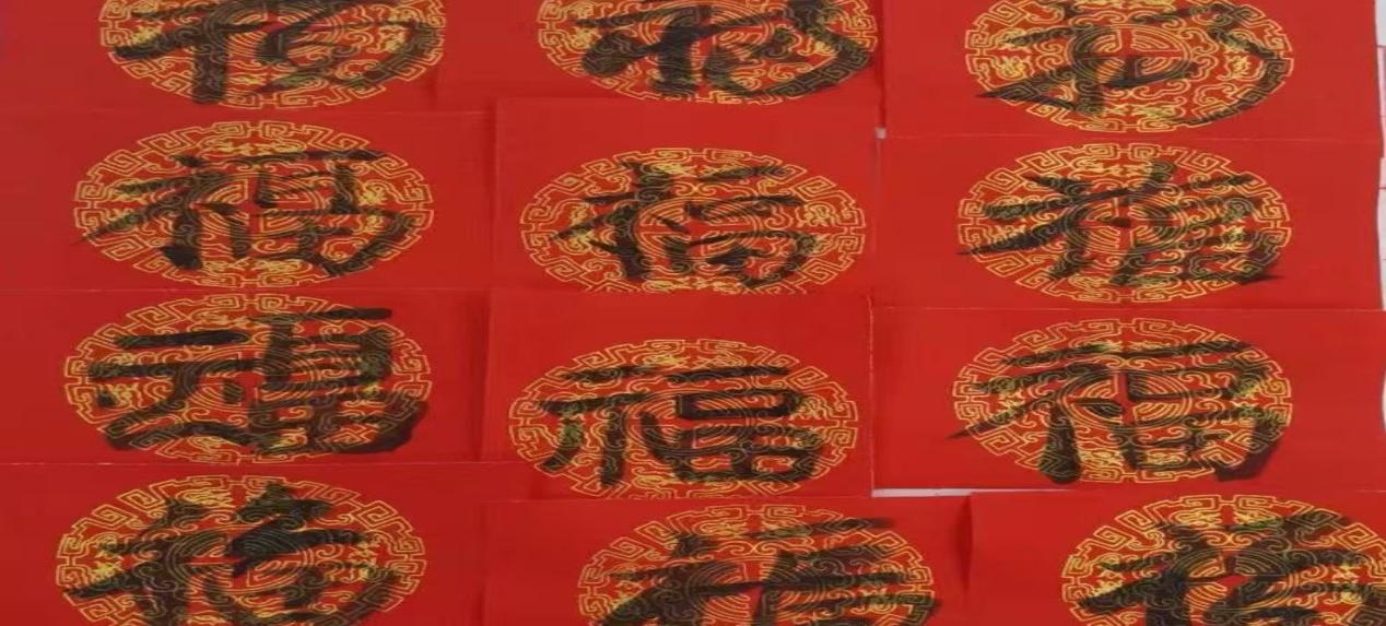 圖為實踐隊成員在新年期間寫福字 通訊員 姜佳麗 供圖