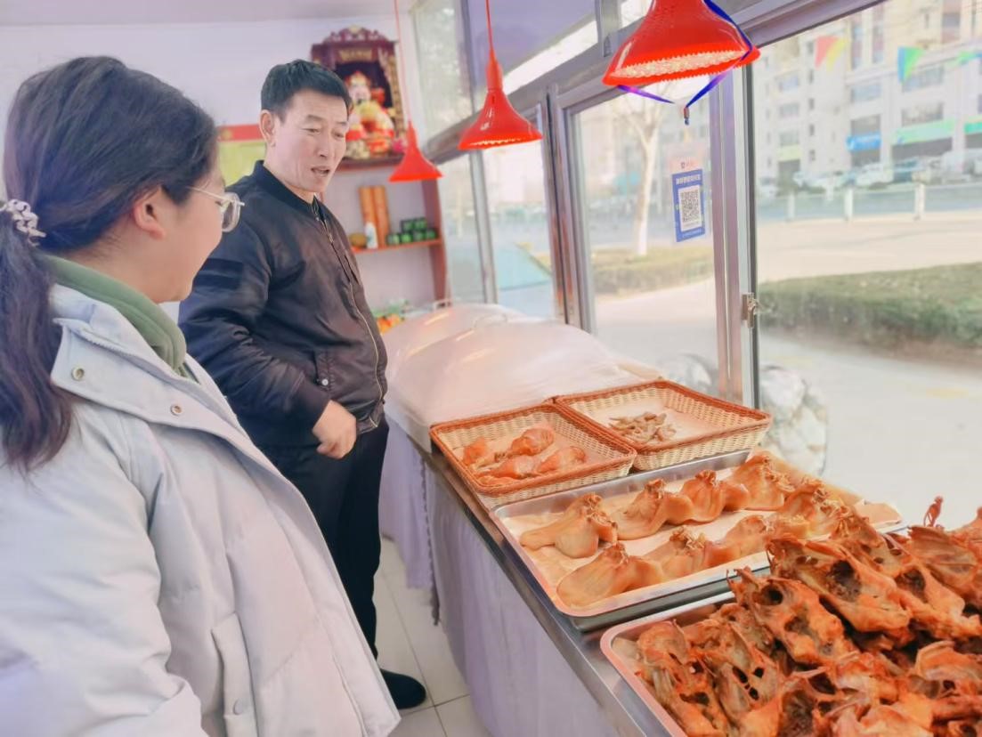 薪火相傳:與傳承人的對話2025年1月13日,曲阜師范大學地理與旅游學院“農遺新韻”實踐隊隊員到達山東省濰坊市諸城市,拜訪諸城燒肉技藝傳承人。剛邁進非遺傳承人的燒肉作坊,實踐隊員便被滿屋的肉香所吸引,在作坊中,一塊塊諸城燒肉燒雞被傳承人整齊的擺放在餐盤中,散發著誘人的香氣,非遺傳承人熱情的招呼來自五湖四海的社會實踐隊隊員品嘗鹵制好的燒肉,讓實踐隊員們感受到了諸城人的熱情和諸城燒肉這一特色美食的魅力。