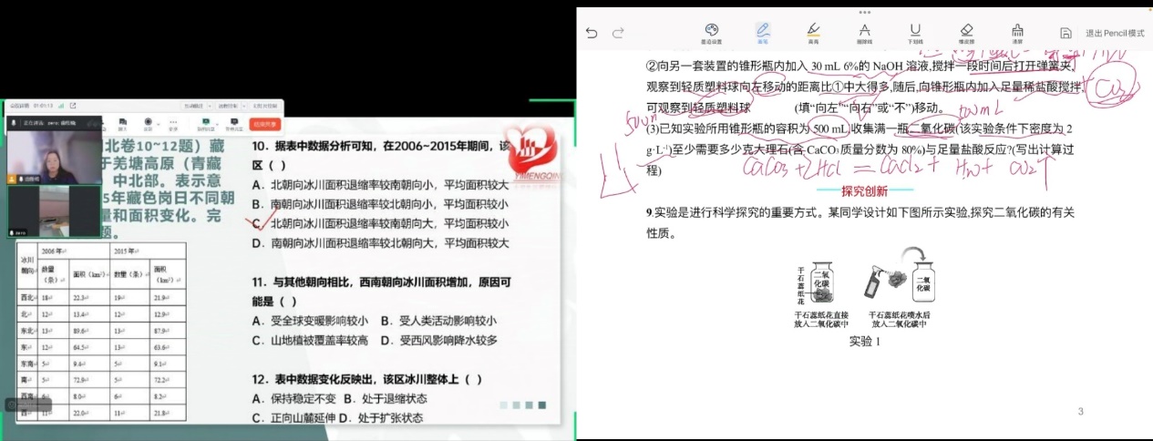 地理課堂上,志愿者借助圖表和數據,向學生們講解了羌塘高原冰川面積的變化等內容,引導學生分析數據背后的地理現象和原因,培養學生的地理思維和分析能力,讓孩子們仿佛置身于廣袤的地理世界,領略大自然的神奇與奧秘。化學課上,志愿者老師通過實驗的方式,引導孩子們探究二氧化碳的性質。老師展示了干石蕊紙花在不同條件下與二氧化碳的反應實驗,讓孩子們觀察現象并思考原因。在講解過程中,老師詳細分析了實驗中涉及的化學反應方程式,以及二氧化碳與氫氧化鈉溶液反應后對輕質塑料球移動的影響。通過這樣的實驗教學,孩子們不僅學到了化學知識,還培養了他們的觀察能力和實驗探究精神,感受到化學世界的奇妙與樂趣。