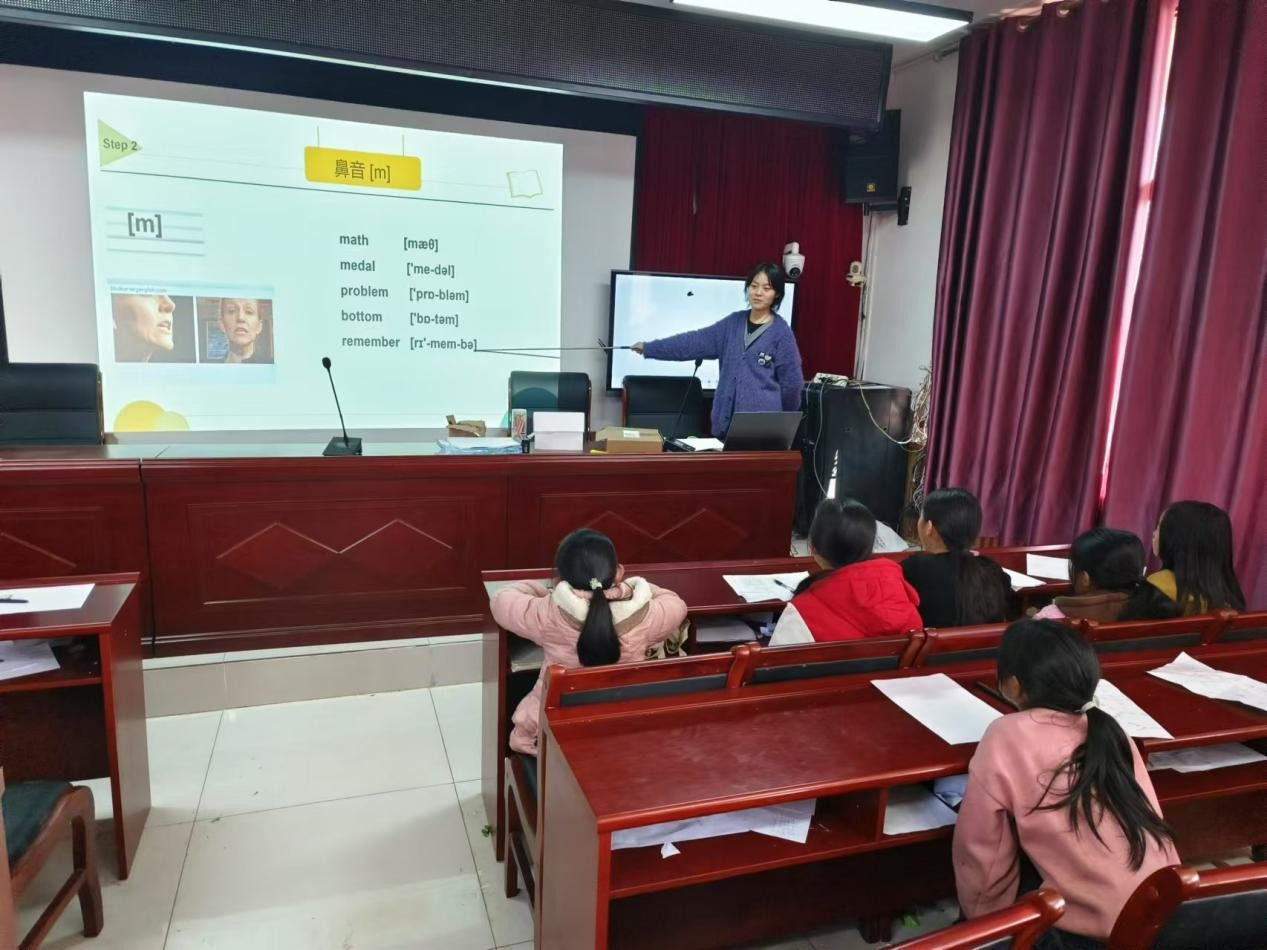 經過短暫的課件休息后,李德正同學為大家講解了國際音標課的第二部分——輔音部分,李德正同學親自領讀,激發了孩子們對英語學習的興趣,為大家日后的單詞認讀打下了基礎。課堂里,孩子們學習熱情高漲,積極配合,大聲跟讀,整個課堂呈現一片和諧。