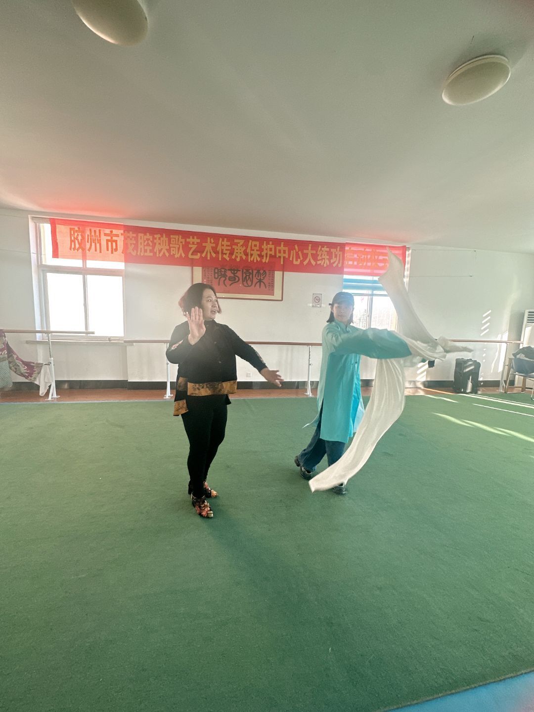 圖為賢繼紅老師親自演示并指導實踐隊員茂腔的基本動作。張昕 供圖