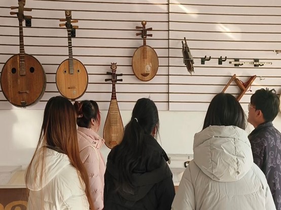 圖為實踐隊員觀看茂腔表演所使用到的部分樂器,包括琵琶、中阮、月琴等。王中貞 供圖