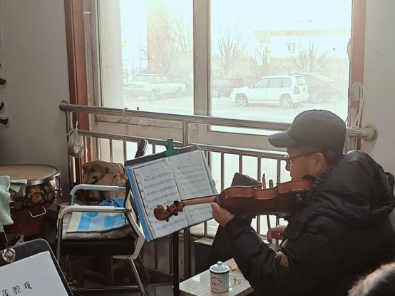 圖為藝術(shù)團(tuán)成員練習(xí)樂器。許田雨 供圖