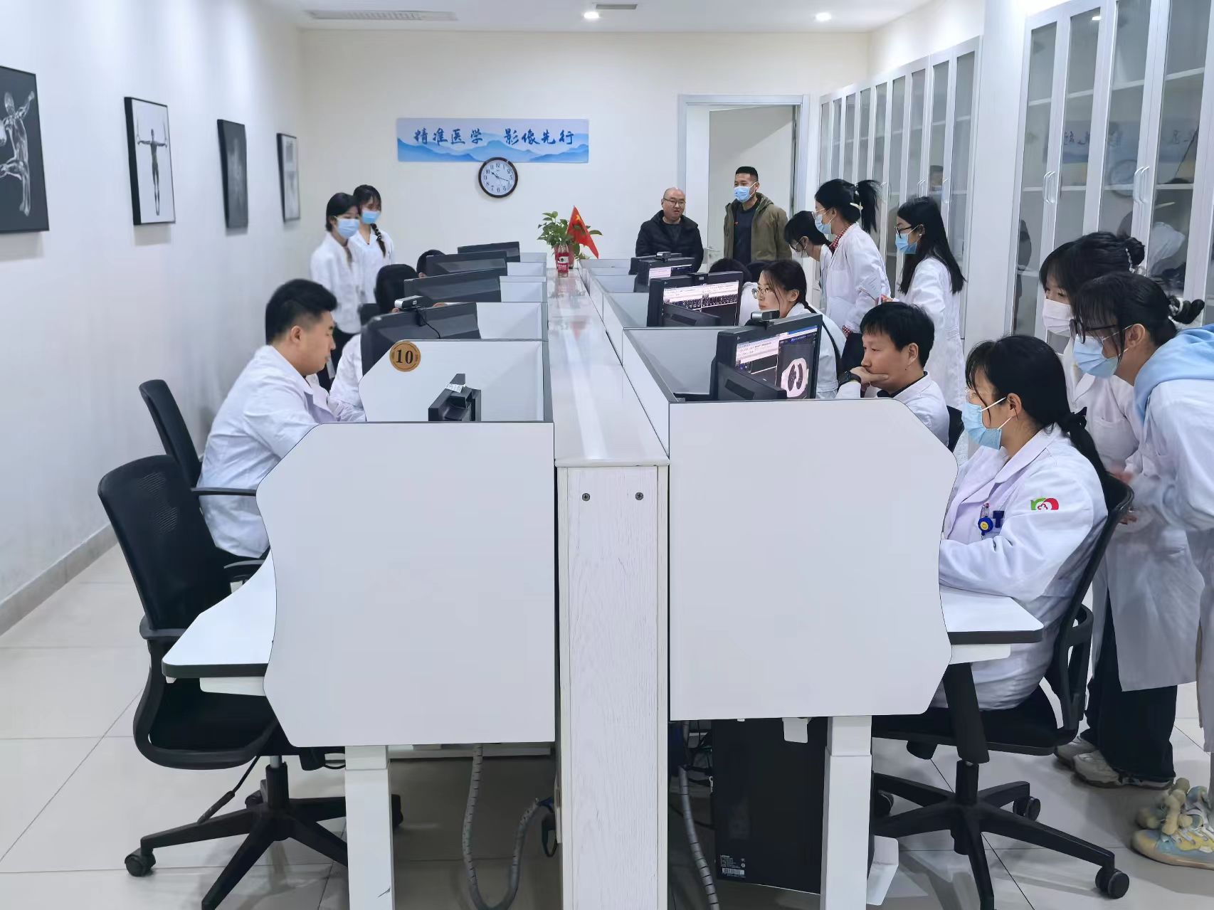 精準醫學,影像先行。活動當天,同學們早早抵達人民醫院醫學影像科,孫宗博和孫曉楠帶領同學們系統地參觀了醫學影像科,對各影像設備進行了詳細的介紹,使同學們對其使用方法及注意事項有了初步的了解。通過參觀集中閱片室,同學們與各位老師的密切交流,了解影像處理的原理及人工智能在處理影像數據時的應用。同時,在白東芳的指導下,同學們有序開展了影像科全流程檢查調研活動,以調查問卷的形式,和病患們進行直接的交流溝通。通過線下與線上相結合調研的方式,更全面的了解到病患在影像檢查的需求,以便志愿者做出相應的調研報告,為病患排憂解難,為放射科全流程檢查的順利進行盡一份綿薄之力。最后,白東芳、孫宗博對本次活動進行了總結,他們指出,理論知識是實踐的基石,沒有扎實的理論基礎,實踐操作就會變得盲目而無效率,同時,實踐是檢驗理論的試金石,只有將理論知識應用于實際情境中,才能真正理解和掌握其精髓。