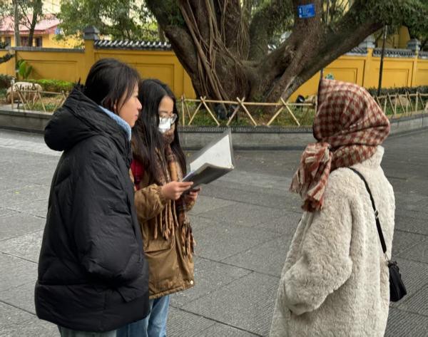 在離開展廳后,為廣泛收集社會各界對桂林漁鼓的看法,團隊成員在展示中心周邊以及附近街道隨機對過往路人展開訪談。訪談內(nèi)容涵蓋不同年齡段、職業(yè)和文化背景的群體對桂林漁鼓的認知程度,了解他們參與公共文化生活的意愿,以及對 “紅色文化 + 非遺文化” 融入文化生活的接受程度等。