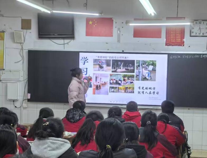 踏上講臺,看著臺下一張張稚嫩的臉龐,實踐隊員首先給他們分享了自己的高三生活,通過相似的生活經歷,一下子拉近了與同學們之間的距離,大家都像是并肩作戰的戰友。接著,面對他們最后的沖刺階段的緊張和無措,她以過來人的身份,給同學們分享高考經驗和心得,為同學們提供緩解壓力的辦法,幫助他們放平心態,以平常心對待高考。