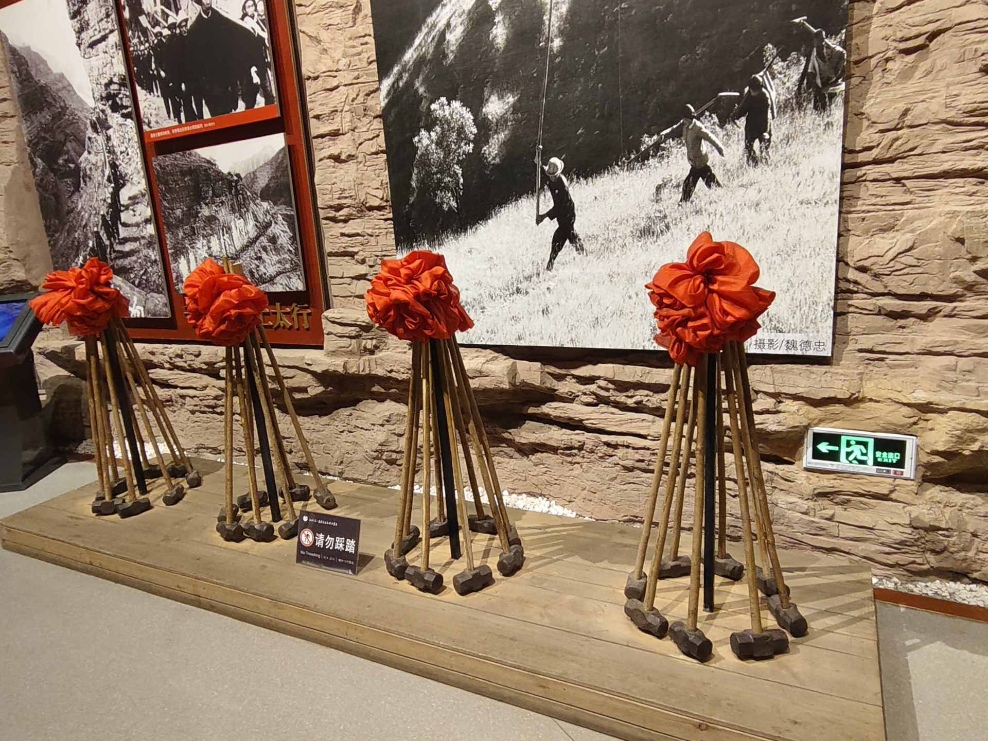 館內陳列的鐵錘、鋼釬、手推車等工具,生動再現了當年建設者們的艱辛與智慧,講解員詳細介紹了紅旗渠的設計理念、施工技術以及建設過程中遇到的種種困難和挑戰,讓實踐隊成員深刻感受到林縣人民不畏困難,團結協作的精神。