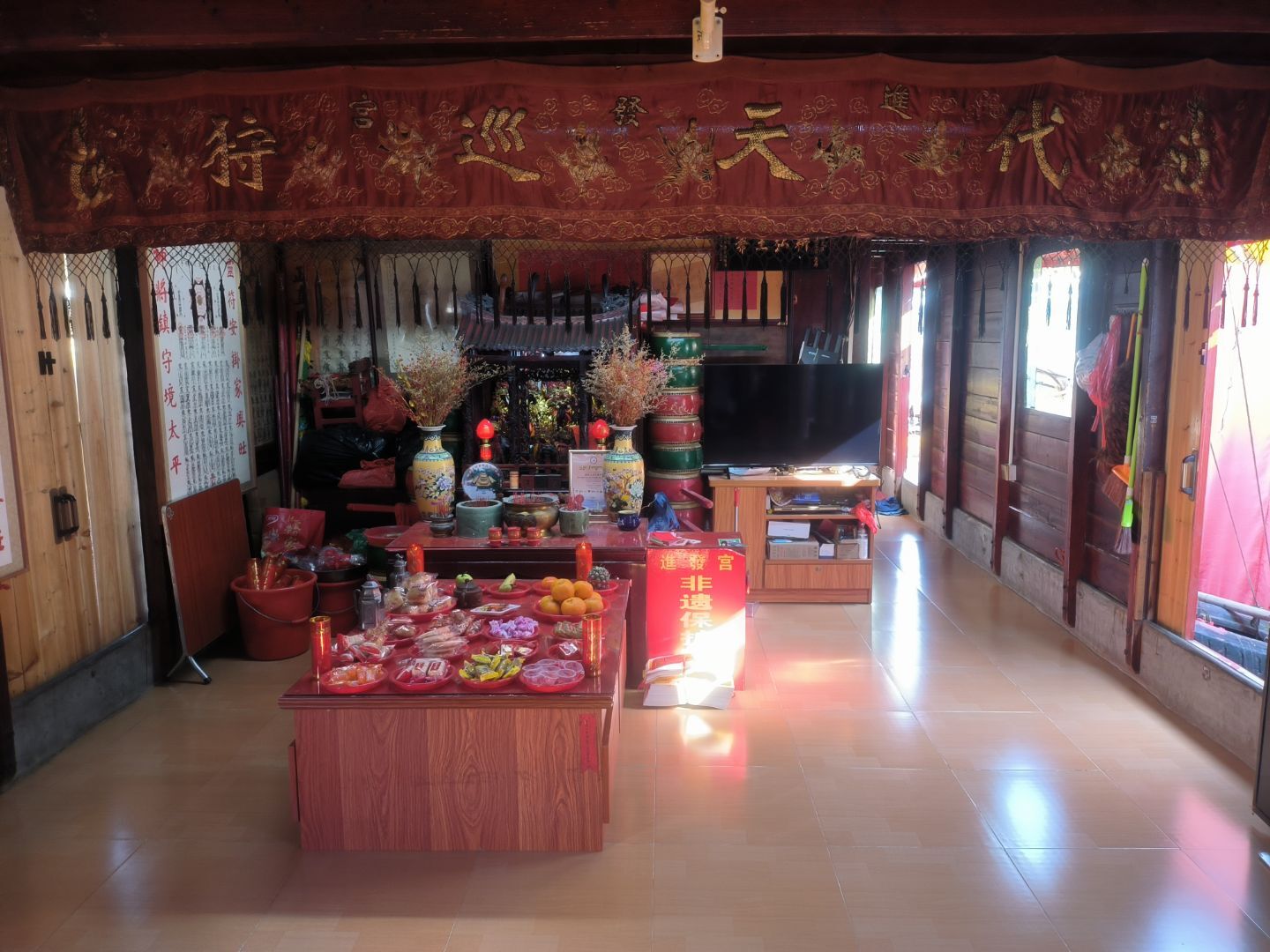 實(shí)踐隊(duì)此行的重要目的地——進(jìn)發(fā)宮,是世界上最小最神秘的袖珍級(jí)水上廟宇。這座廟宇有500多年的歷史,是船民世代傳承下來的廟,至今依然?吭诮嫔希钳D民們的精神寄托。實(shí)踐隊(duì)成員在宮內(nèi)仔細(xì)觀察,記錄下每一尊神像的細(xì)節(jié)和宮內(nèi)的布置。宮內(nèi)供奉著玄天上帝、九天玄女、玉皇上帝、關(guān)帝、閻羅王、哪吒、池朱邢李四王爺?shù)缺姸嗌耢`。每年農(nóng)歷三月初三,船民們會(huì)聚集到廟船里迎接從外海巡狩而來的王令駐鎮(zhèn),并領(lǐng)回一面三角令旗。這面令旗代表著王爺與大眾的約定,直到秋后九月十三要送出王船時(shí),再送回廟里隨王爺?shù)耐醮h(yuǎn)去。這一儀式不僅是信仰的傳承,更是疍民文化延續(xù)的象征。