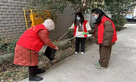 圖為志愿者們?cè)谡J(rèn)真清掃街道,為社區(qū)環(huán)境整潔貢獻(xiàn)力量