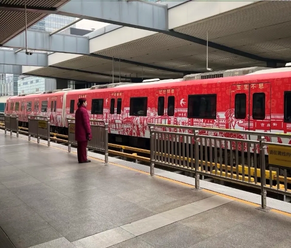 軌道交通移動展廳:春節前夕,“非遺剪紙全景地鐵專列”亮相武漢地鐵1號線。剪紙長卷融合黃鶴樓、長江等地標,乘客感嘆“車廂里剪出了武漢的年味與煙火氣”。