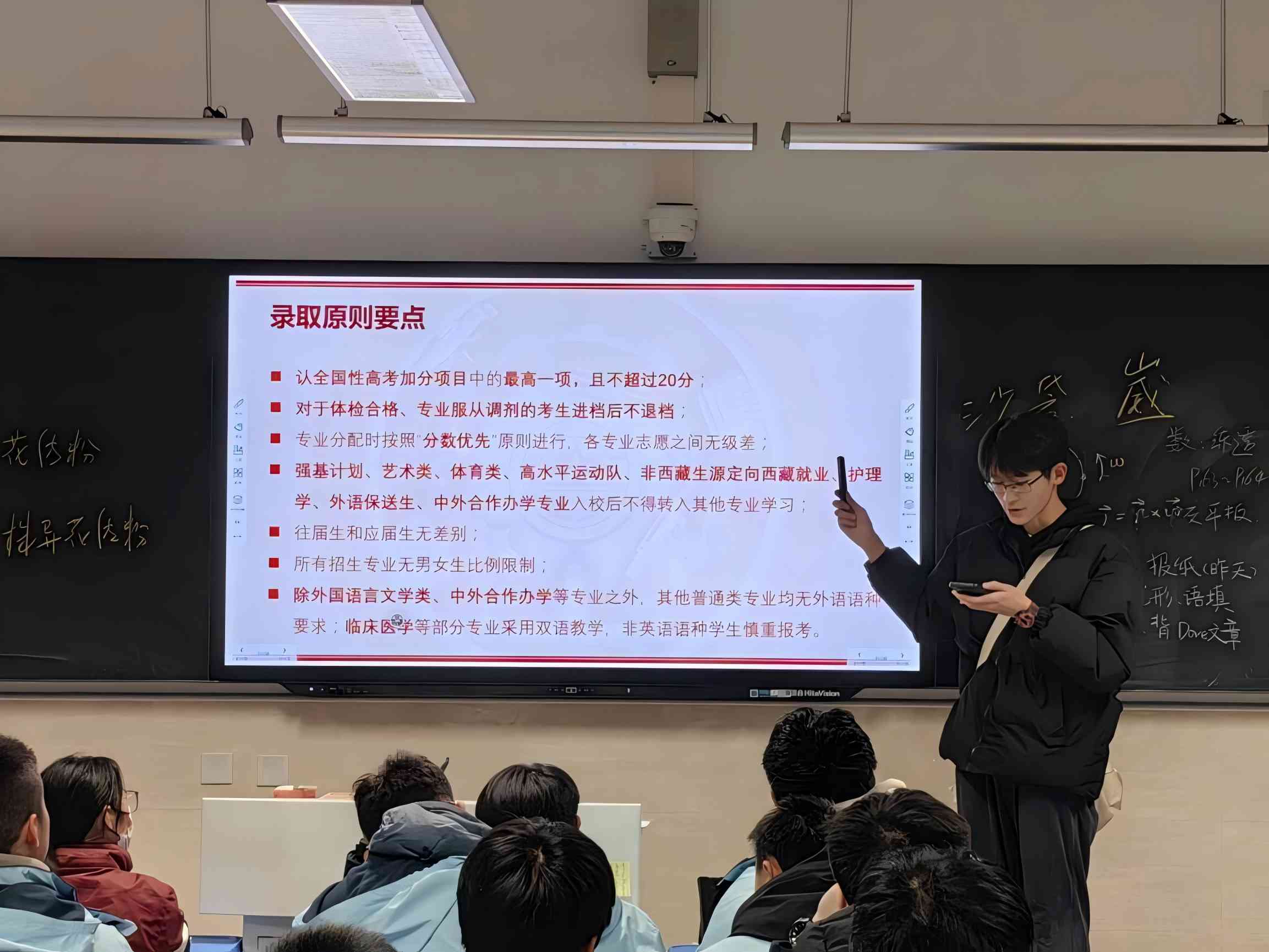 宣講過程中,王者也結合自身經歷,分享了選擇藥學專業的緣由和在山大的學習生活。他對山大圖書館的豐富藏書、實驗室濃厚科研氛圍以及師生間溫暖情誼的描述,引發了學弟學妹們的強烈興趣,他們眼中閃爍著對大學生活的向往。答疑環節,同學們踴躍提問,從錄取分數線、保研比例到學習方法、職業規劃,王者也都一一耐心解答。宣講結束后,他還建立交流群,以便后續持續為學弟學妹們答疑解惑。