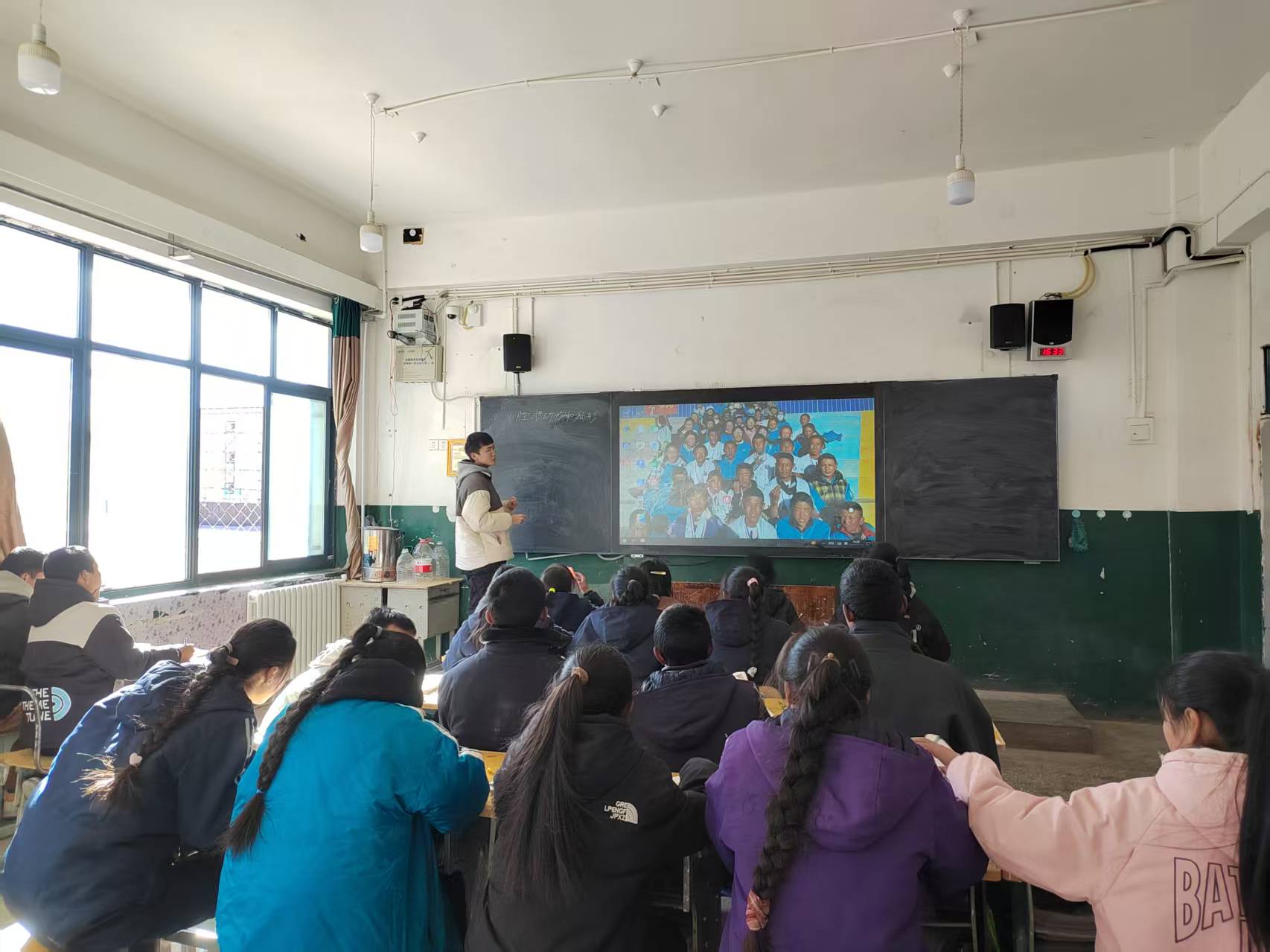 “上課,起立!老師好!”伴隨著孩子們清脆而整齊的問候聲,一群年輕的實習老師走上講臺,臉上洋溢著自信與熱情。盡管課前的小插曲讓氣氛略顯緊張——突如其來的風沙導致學校短暫停電,教學設備無法使用,教室里一片漆黑——但這一切都在歡聲笑語中悄然化解。臺上的實習老師略顯慌亂時,班長卻從容地從教室后的柜子里取出蠟燭,分發給每一位同學。微弱的燭光在黑暗中跳動,映照出孩子們純真的臉龐。就在這溫暖的燭光中,孩子們自發組織了一場小小的歡迎儀式,用稚嫩的歌聲為這群“新老師”獻上了最真摯的祝福。那一刻,教室里的黑暗仿佛被歌聲和燭光驅散,取而代之的是滿滿的感動與希望。