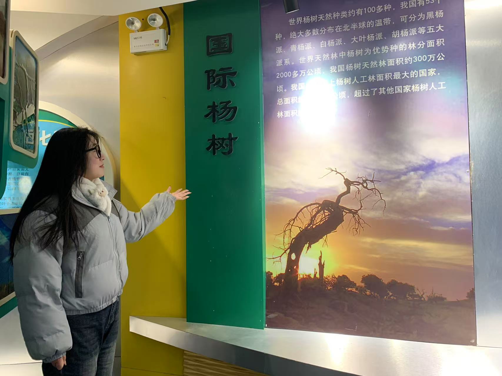 圖為實(shí)踐團(tuán)成員了解國(guó)際楊樹種類。胡晨依 供圖