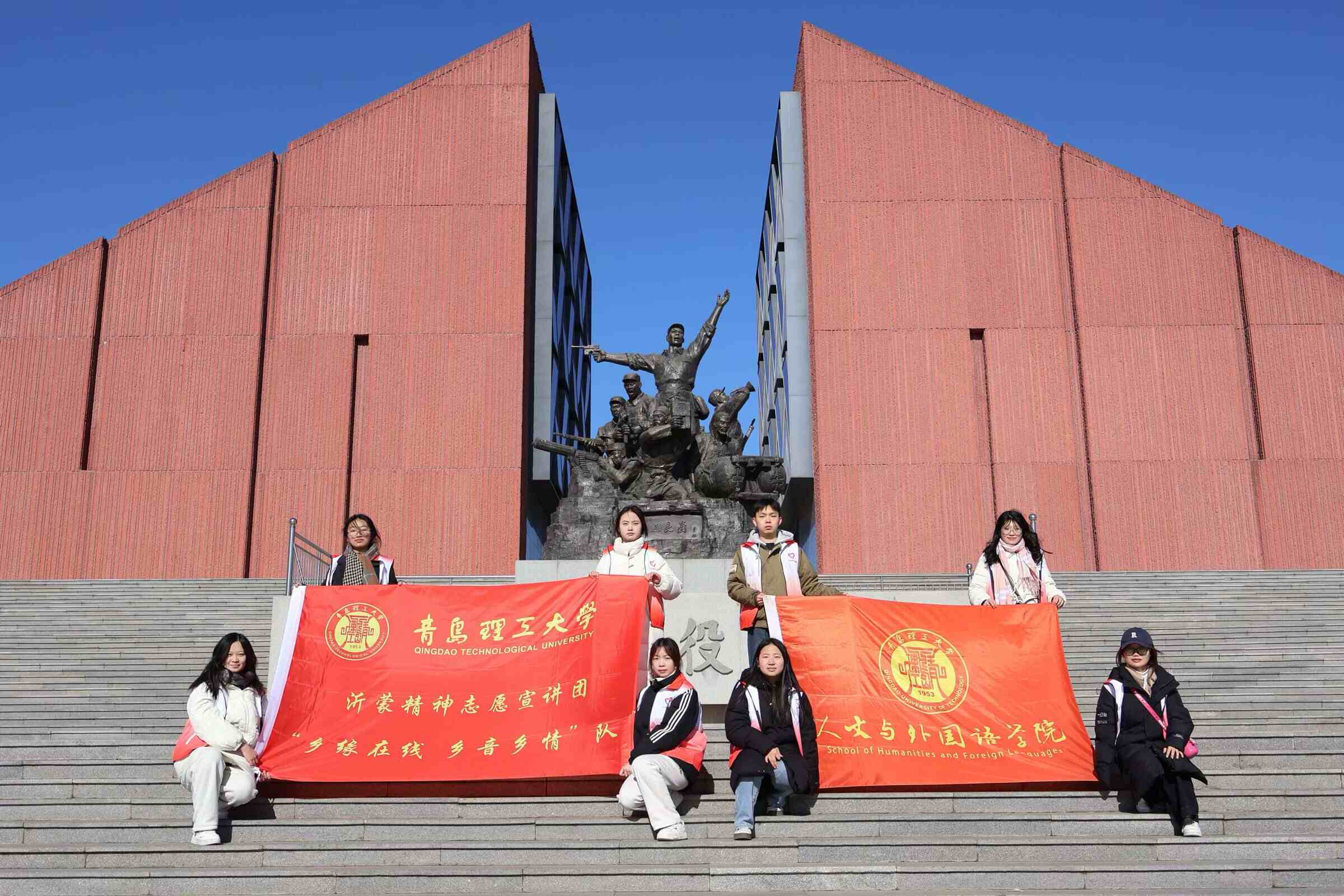 追尋紅色足跡行,沂蒙精神永傳承 ——青島理工大學人文與外國語學院宣講團赴臨沂社會實踐紀實 2025年1月8日至1月9日,青島理工大學人文與外國語學院“鄉緣在線,鄉音鄉情”沂蒙精神宣講團成員們懷揣著對革命歷史的敬仰與追尋,踏上了前往山東省臨沂市的紅色之旅。此行旨在深入學習和傳承沂蒙精神,讓紅色基因在新時代青年心中生根發芽。