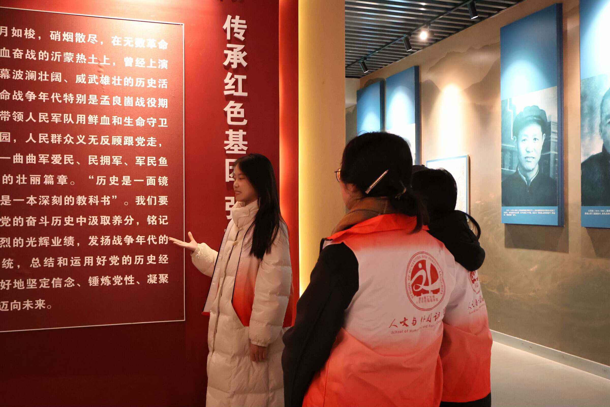 進入紀念館內部,一幅幅珍貴的歷史照片、一件件飽經風霜的革命文物,瞬間將大家拉回到了那個戰火紛飛的年代。宣講團成員們仔細聆聽講解員的講解,時而駐足凝視,時而低頭沉思。在參觀過程中,宣講團成員朱羽欣結合自己所學知識,為現場觀眾進行了生動的沂蒙精神宣講。從歷史背景、革命事跡、精神內涵等多個方面入手,用真摯的情感、樸實的語言,將沂蒙精神娓娓道來,讓在場的每一位觀眾都深受觸動。