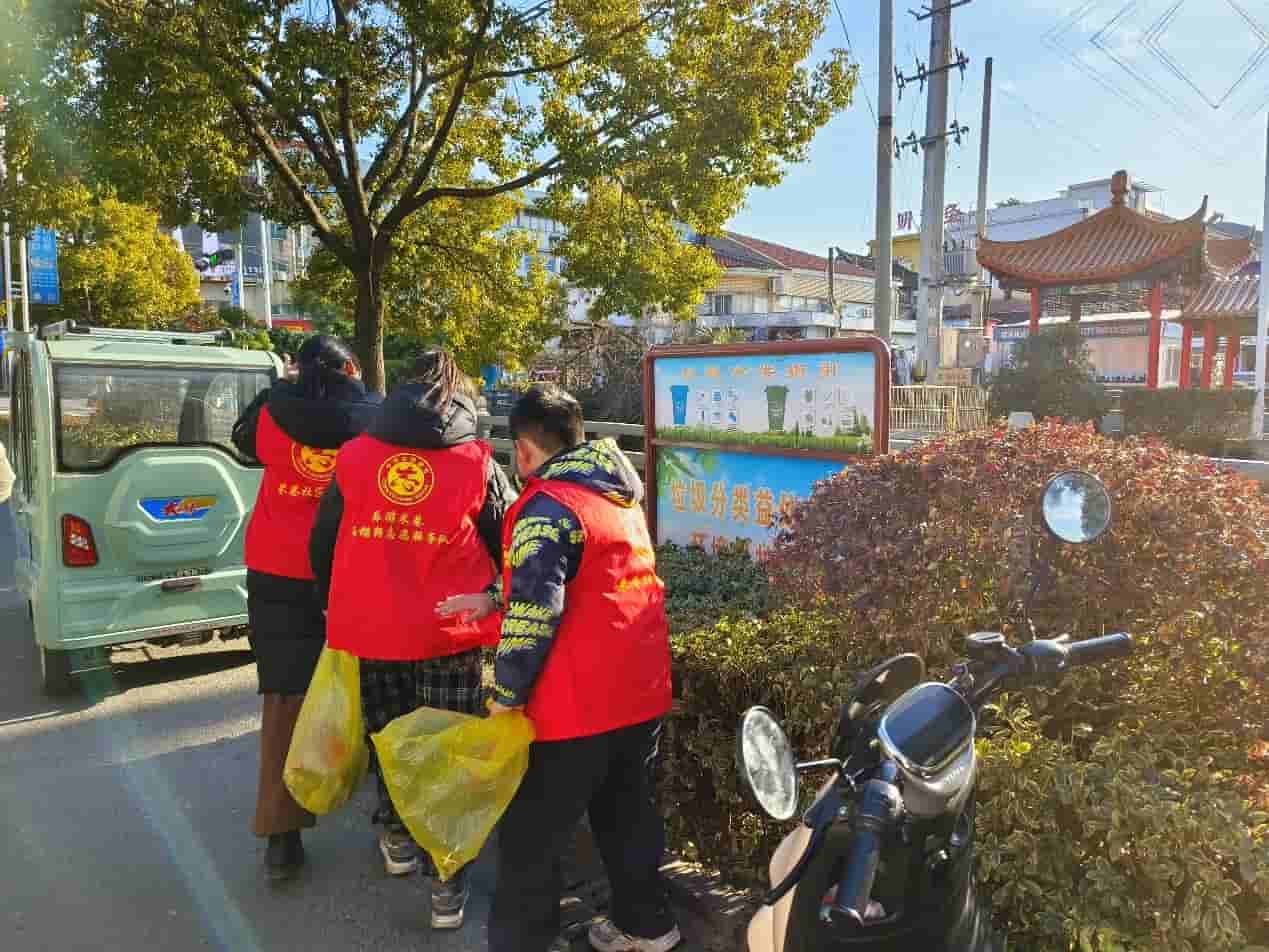 圖為江蘇科技大學海洋學院實踐團成員陳舒蕊進行垃圾分類。今日大學生網通訊員陳舒蕊 供圖