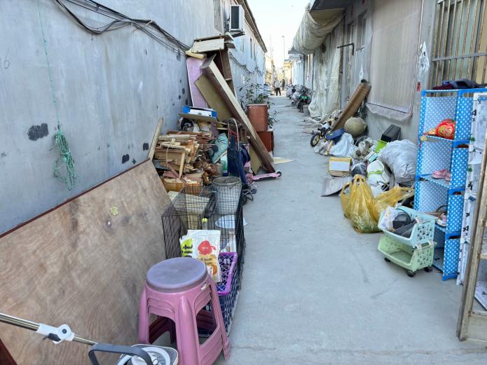 圖為村民樓前堆放的雜物。 牛紫怡 供圖