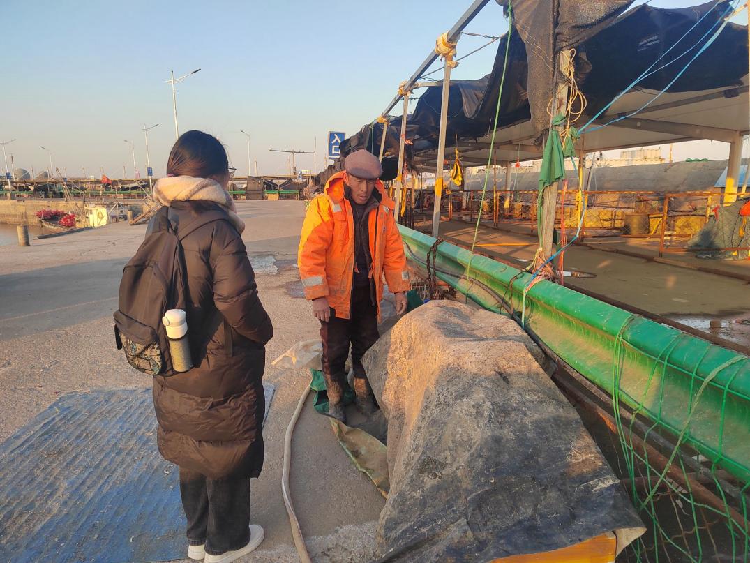 圖為社會實踐隊隊員與漁民交談 孫夢涵 供圖