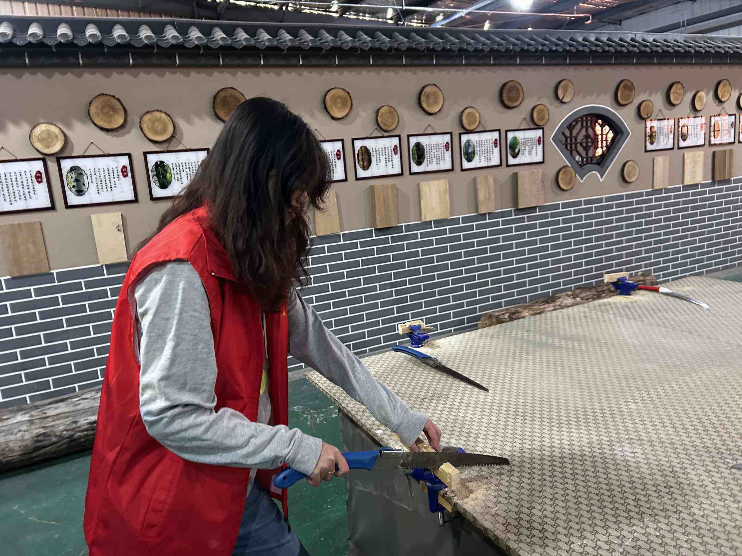 為了更深入地了解木工技藝,非遺館內工作人員親自指導隊員們進行了簡單的木工制作體驗,學習了木工工具的使用方法、各類木材的特性,以及復雜精妙的榫卯結構、雕刻技法等傳統木工技藝。從木材的選擇、切割,到打磨、組裝,每一個步驟都需要高度的專注和耐心。在制作過程中,隊員們深刻體會到了“差之毫厘,謬以千里”的含義,哪怕是微小的失誤都可能影響整個作品的質量。