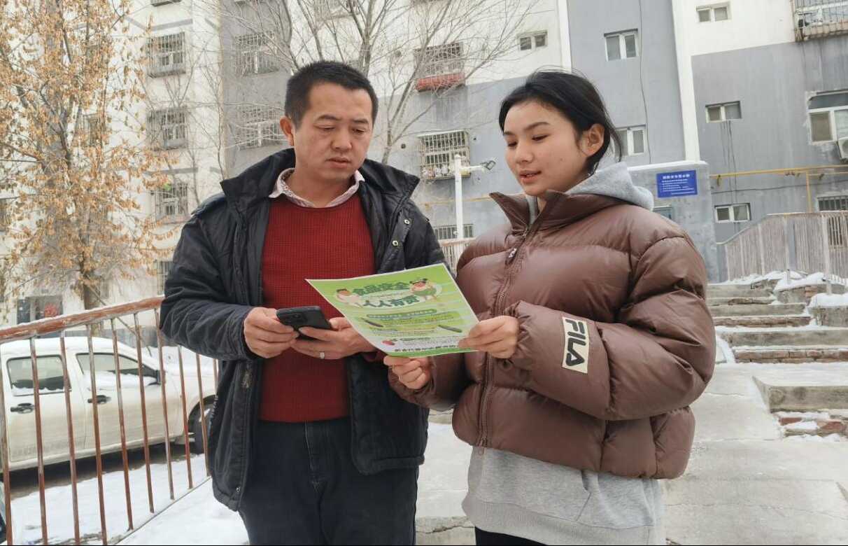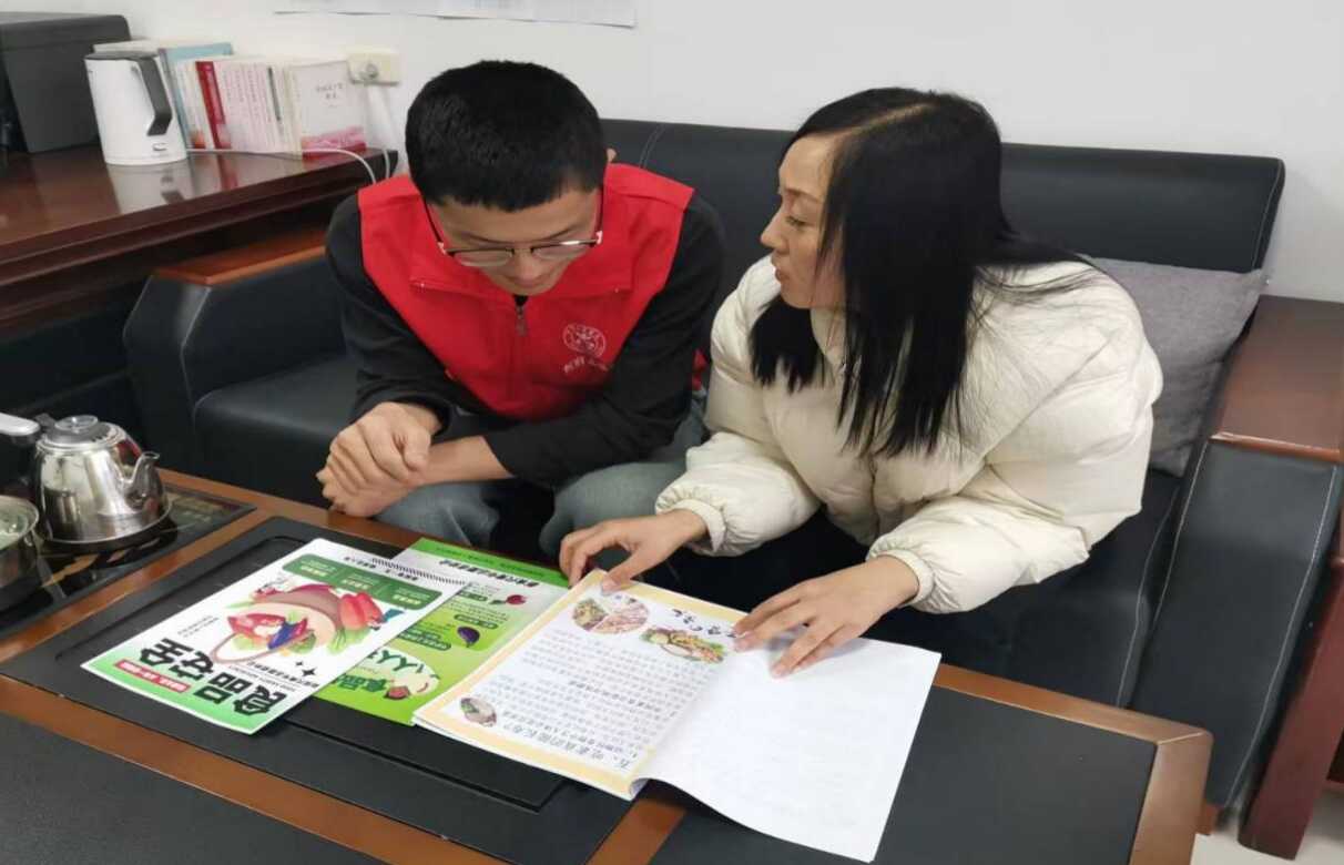 (圖為實(shí)踐團(tuán)成員向居民科普膳食知識(shí))