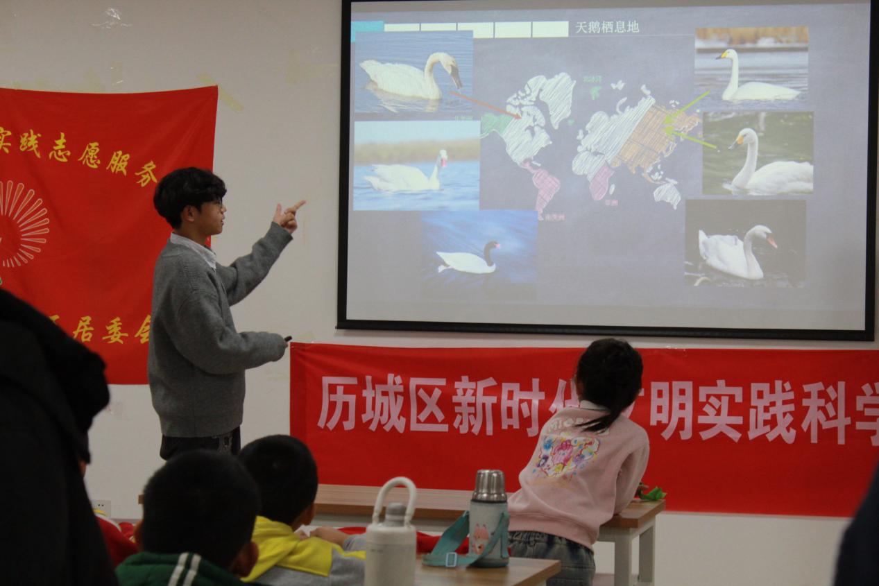 1月18日,山東師范大學地理與環境學院“綠野仙蹤”科普小隊走進濟南歷城區御山首府東區居委會,開展第一站保護生物多樣性系列活動。為社區內的孩子們帶來了一場關于生物多樣性的知識講座,報告主題為《以天鵝為媒介探索生物多樣性奧秘》。