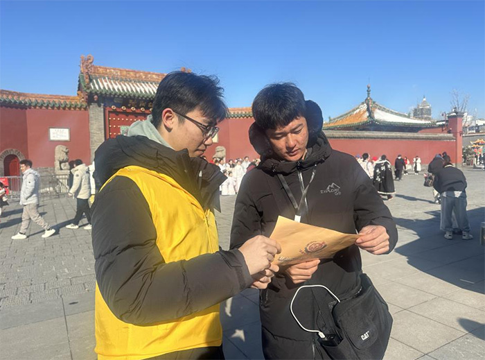 為了了解游客對沈陽文化旅游與非遺文化的認(rèn)知和需求,成員們來到遼寧省博物館、沈陽故宮和老北市。進行對游客的采訪、發(fā)放調(diào)查問卷和沈陽非遺地圖的發(fā)放。