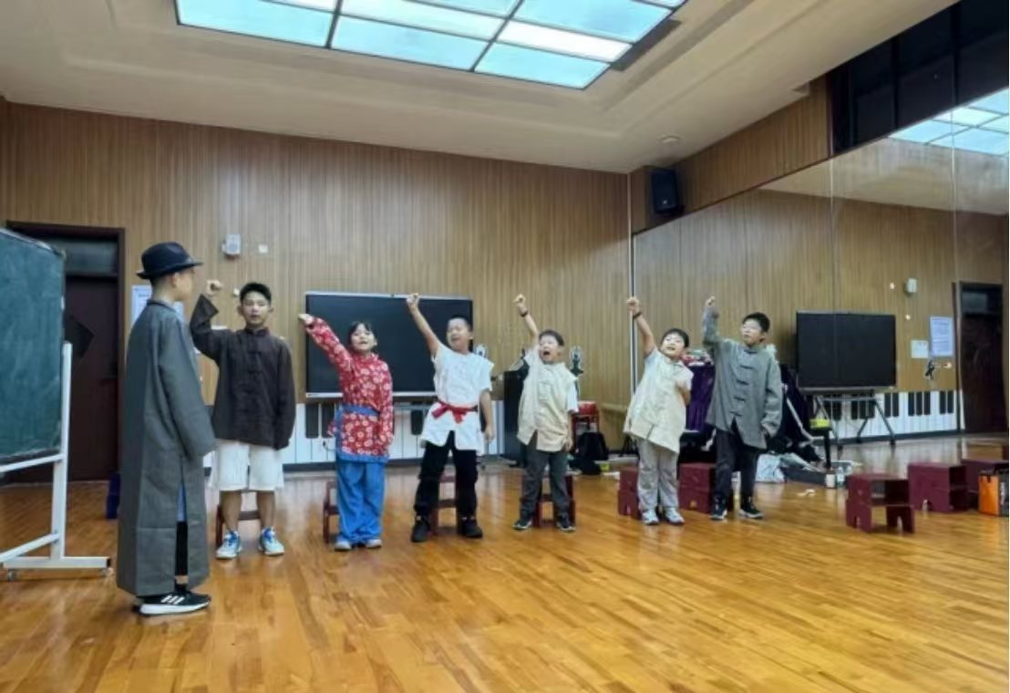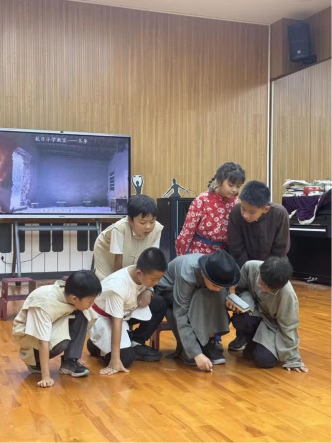為賡續紅色血脈、弘揚革命精神,實踐團開展了一場別開生面的沉浸式紅色情景劇演繹活動,以抗日小學的故事為起點,帶領小學生們踏上了一場從紙面到舞臺的沉浸式旅程,讓英雄精神在表演中扎根,讓紅色記憶在互動中鮮活起來。