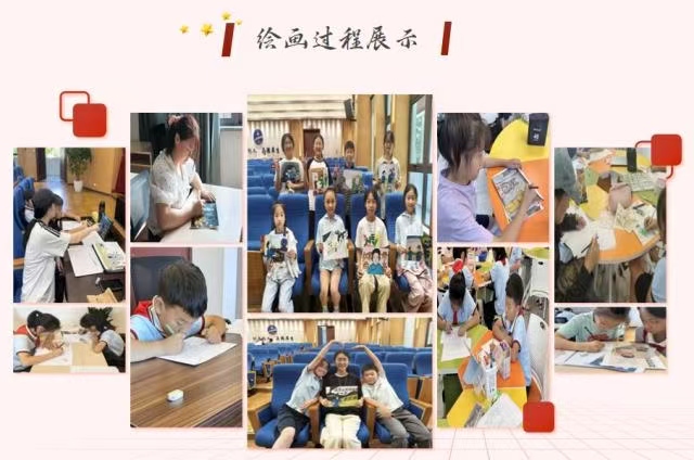 實踐團成員帶著精心準備的紅色繪本走進小學課堂,用孩子們易懂的語言講述紅色故事。他們將英雄慷慨就義的壯舉、抗日民兵智斗碉堡的巧思,轉化為生動鮮活的表達,讓一個個英雄故事深深印在孩子們心里。  故事分享后,實踐團成員鋪開畫紙、分發畫具,手把手指導孩子們創作紅色繪本。從線條勾勒到色彩填充,大學生們耐心引導,鼓勵孩子們用畫筆展現心中的英雄形象與歷史場景。低年級學生不會勾線,只會簡單上色,實踐團成員就幫助他們一起打稿勾線;高年級學生有創意想法,實踐團成員便笑著支持他們大膽發揮。 歷時一周的時間,一張張充滿童真的畫作新鮮出爐。當這些作品被逐一拼接,一幅連貫的抗戰畫卷  緩緩展開,成為偉大抗戰精神傳承的生動見證。