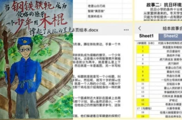 繪本的創作歷經波折,選題要從眾多的抗日戰爭故事中反復甄選,耗時耗力,如何把嚴肅的敘事改寫為兒童語言、讓圖文承載愛國主義情感與價值觀,更令實踐團成員絞盡腦汁。此次實踐活動的開展,離不開半個多月扎實的準備工作。實踐團成員先在提取完成了80篇老兵抗戰故事提取,隨后以這些故事內容為主線,精心構思繪本各頁的畫面和文本,設計出了紅色繪本范本,為后期的繪本教學和共同創作奠定了堅實基礎。